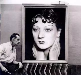 曼·雷 Man Ray 在 Kiki的畫像前,照片攝于1930s